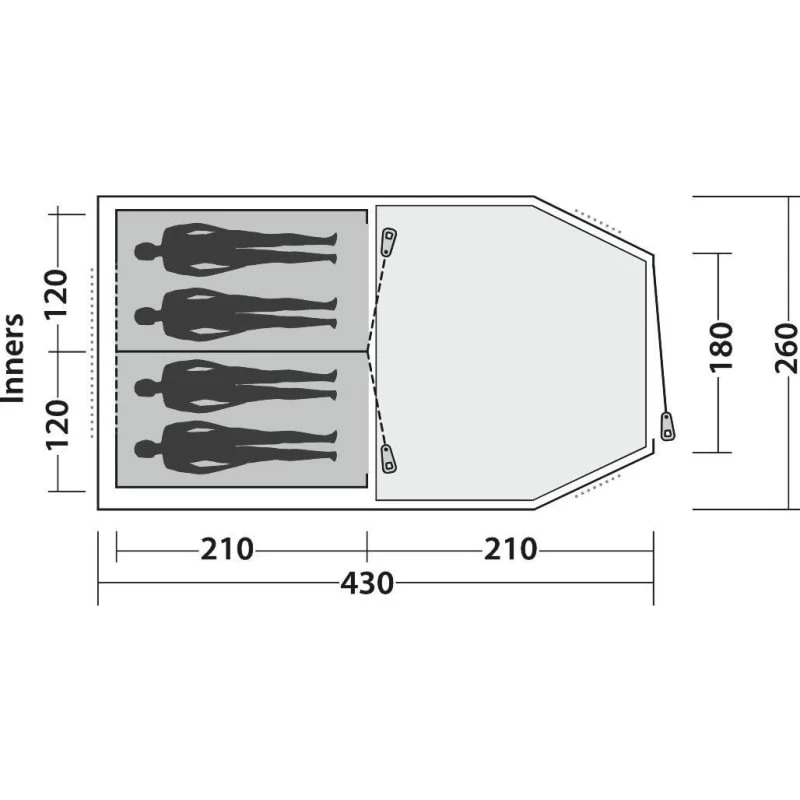 | Innertelt mål: | 210 x 240 x 150/160 cm |